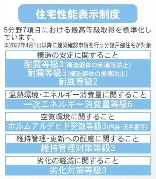 住宅性能表示5分野7項目で最上等級取得。