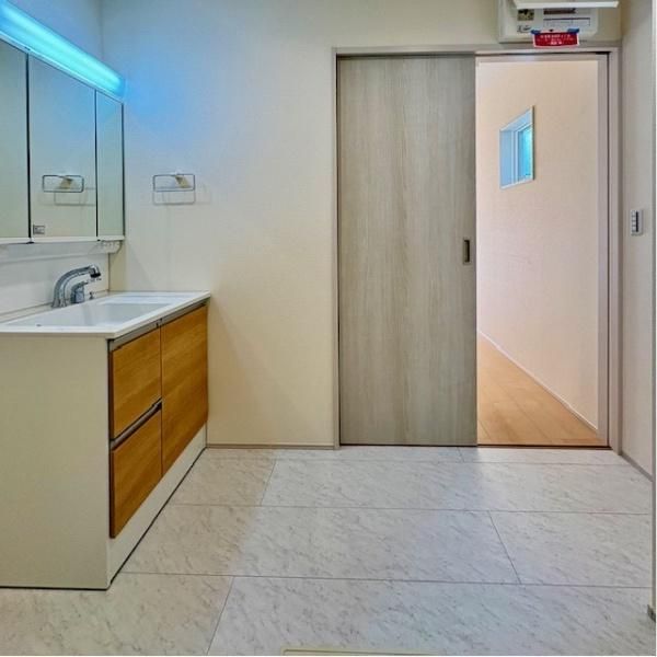 白基調の洗面所はとても清潔感があります。