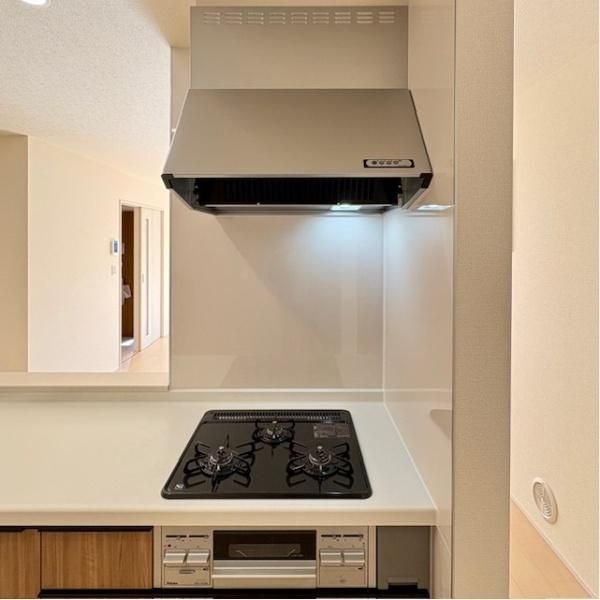 コンロは三ツ口で大型換気扇付です。