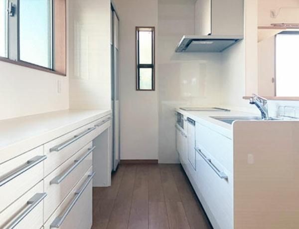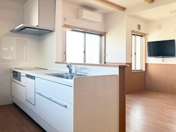 リビングを見渡せるカウンターキッチン。