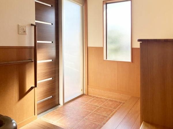玄関は大きい開口窓でとても明るいです。