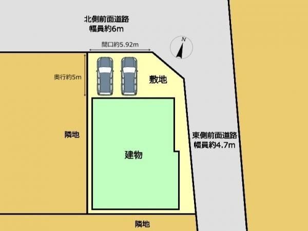 | 土地面積基準 | 公簿 | 接道 | 公道 北西 幅員6m 公道 南東 幅員4.7m |