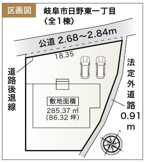 | 土地面積基準 | 公簿 | 接道 | 公道 北 幅員2.6m 公道 東 幅員0.91m |