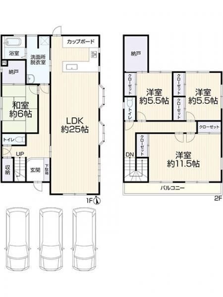 ・ミサワホーム施工で、リビングはゆとりの25帖、ファミリー層にピッタリな4SLDKの間取り。・2階に納戸があるので収納に便利ですね♪陽当たり良好なバルコニー付。