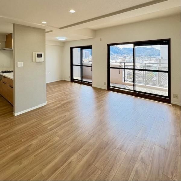 南向き陽当り良好な17帖のリビングです。